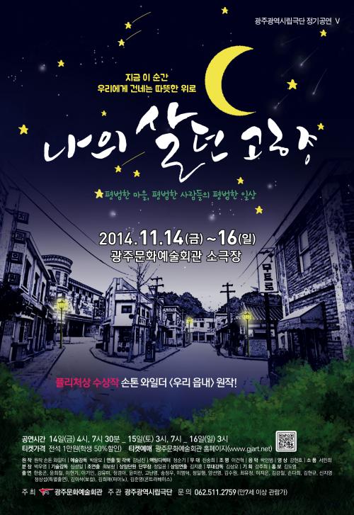 [±¤ÁÖ=¹Ìµð¾îÀü³²]¾ç½Â¸¸ ±âÀÚ=±¤ÁÖ±¤¿ª½Ã¸³±Ø´Ü(¹ÚÀ±¸ð ¿¹¼ú°¨µ¶)Á¦5ȸ Á¤±â°ø¿¬ ¿¬±Ø ¡®³ªÀÇ »ì´ø °íÇ⡯ÀÌ ¿À´Â 11¿ù 14ÀϺÎÅÍ 16ÀϱîÁö ±¤ÁÖ¹®È¿¹¼úȸ°ü ¼Ò±ØÀå ¹«´ë¿¡ ¿À¸¥´Ù.