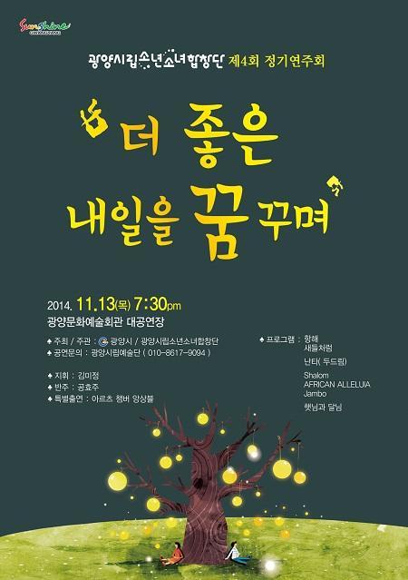 [±¤¾ç=¹Ìµð¾îÀü³²]Á¤ÀçÃá ±âÀÚ=»ç¶û°ú ±â»Ý °¡µæÇÑ ¼±À²À» ¼±»çÇÏ´Â ±¤¾ç½Ã¸³¼Ò³â¼Ò³àÇÕâ´Ü(ÁöÈÖ ±è¹ÌÁ¤)ÀÇ Á¦4ȸ Á¤±â¿¬ÁÖȸ°¡ '´õ ÁÁÀº ³»ÀÏÀ» ²Þ²Ù¸ç'¶ó´Â ÁÖÁ¦·Î ¿À´Â 13ÀÏ ¿ÀÈÄ 7½Ã 30ºÐ ±¤¾ç¹®È¿¹¼úȸ°ü ´ë°ø¿¬Àå¿¡¼ ¿¸°´Ù.