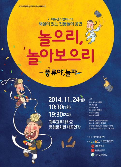 ±¤ÁÖ½Ã, ±¤ÁÖ¹®ÈÀç´Ü, Çѱ¹¿¹¼úÀ§¿øÈ¸, ±¤ÁÖ±³À°´ëÇб³°¡ ÈÄ¿øÇÏ´Â À̹ø °ø¿¬Àº ÀüÅë³îÀÌÀÇ ¸Ú°ú ÈïÀ» ¹«´ë³îÀÌ·Î ½ÂȽÃŲ ¿¹¼ú±³À°°ø¿¬ÀÌ´Ù.