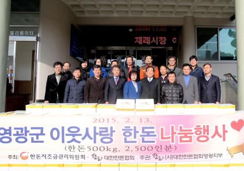 [¿µ±¤=¹Ìµð¾îÀü³²]À̵μ· ±âÀÚ=(»ç)Àü±¹ Çѵ·Çùȸ ¿µ±¤±ºÁöºÎ(ÁöºÎÀå ÇÑÀ¶¼®)¿¡¼ Áö³ 13ÀÏ ¿µ±¤±ºÀÇ ¾î·Á¿î ÀÌ¿ôÀ» À§ÇØ Àü´Þ ÇØ ´Þ¶ó¸ç µÅÁö°í±â 500kg(2,500ÀκÐ) ½Ã°¡ 300¸¸¿ø »ó´çÀ» ¿µ±¤±º¿¡ ±âŹÇÏ¿´´Ù.