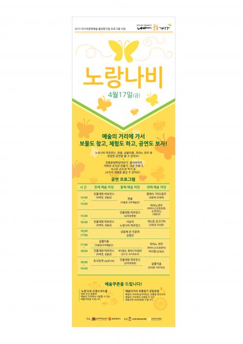 ¿¹¼úÀǰŸ®È°¼ºÈ»ç¾÷´Ü¿¡ µû¸£¸é ³× ¹øÂ° ¡®³ªºñ¾ß ±Ãµ¿°¡ÀÚ¡¯´Â ¡®³ë¶û³ªºñ¡¯ Å׸¶·Î¼ ±×·£µåÇǾƳë¿Í ÇÔ²²ÇÏ´Â ¼ÒÇÁ¶ó³ë-¹Ù¸®Åæ, ÃÊ´ëÇü ÇÑÃã-»ìÇ®ÀÌÃã, ¼½Â¾Æ¿Í ¹«¿ë°¡µéÀÇ ³ë¶û³ªºñÆÛÆ÷¸Õ½º, ¹ÙÀ̿ø°-Ŭ·¡½Ä±âŸÇù¿¬ µî 15°³ °ø¿¬ÀÌ °Å¸®¸¶´ç¿¡¼ ¿¸®¸ç, ¼®°íÇÚµåÇÁ¸°ÆÃ, ÀüÅëÈ¥·Êº¹ÀԾ±â, Çöó¿ö¾ÆÆ®, ¹Îȱ׸®±â µî 21°¡Áö ½Ã¹Î üÇèÇÁ·Î±×·¥À» ¸¶·ÃÇß´Ù°í ÇÑ´Ù.