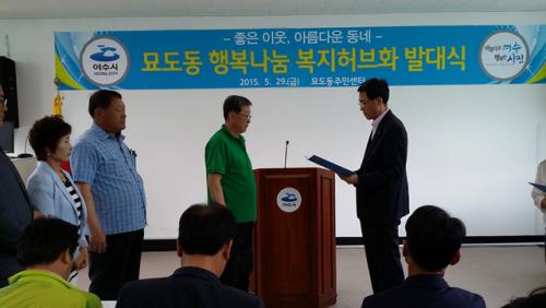 [¿©¼ö=¹Ìµð¾îÀü³²]Á¶È£±â ±âÀÚ=¿©¼ö½Ã ¹¦µµµ¿ Áֹμ¾ÅÍ(µ¿Àå Á¤ÀçÈ£)¿¡¼´Â Áö³´Þ 29ÀÏ Áֹμ¾ÅÍ È¸Àǽǿ¡¼ ÁÁÀº ÀÌ¿ô, ÇູÇÑ µ¿³×¸¦ ¸¸µé±â À§ÇÑ ¡®Çູ³ª´® º¹ÁöÇãºêÈ¡¯ ¹ß´ë½ÄÀ» °¡Á³´Ù