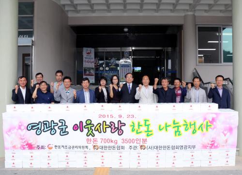[¿µ±¤=¹Ìµð¾îÀü³²]±èÁø°æ ±âÀÚ=(»ç)Àü±¹ Çѵ·Çùȸ ¿µ±¤±ºÁöºÎ(ÁöºÎÀå ÇÑÀ¶¼®)¿¡¼ Áö³ 23ÀÏ ¿µ±¤±ºÀÇ ¾î·Á¿î ÀÌ¿ôÀ» À§ÇØ Àü´ÞÇØ ÁÖ¶ó°í µÅÁö°í±â 700kg(3,500ÀκÐ) ½Ã°¡ 500¸¸¿ø »ó´çÀ» ¿µ±¤±º¿¡ ±âŹÇÏ¿´´Ù.