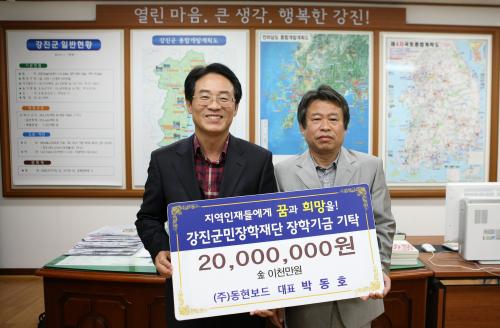 [°Áø=¹Ìµð¾îÀü³²]ÁøÅÂÈ£ ±âÀÚ= °æ±âµµ Æ÷õ¿¡¼ ¢ßµ¿Çöº¸µå¸¦ °æ¿µÇϰí ÀÖ´Â ¹Úµ¿È£ ´ëÇ¥´Â Áö³ 13ÀÏ °Áø±º¹ÎÀåÇÐÀç´Ü(ÀÌ»çÀå °Áø¿ø)¿¡ 5³â ¿¬¼Ó ±º¹ÎÀåÇÐ±Ý ±âŹÀ¸·Î ³²´Ù¸¥ °íÇâ»ç¶ûÀÇ ¸¶À½À» Àü´ÞÇß´Ù.