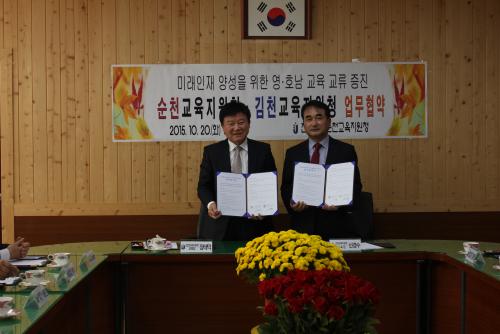 [¼øÃµ=¹Ìµð¾îÀü³²]Á¶È£±â ±âÀÚ=Àü¶ó³²µµ¼øÃµ±³À°Áö¿øÃ»(±³À°Àå ½Å°æ¼ö)Àº 10¿ù 20ÀÏ(È) °æºÏ±èõ±³À°Áö¿øÃ»°ú ¹Ì·¡ÀÎÀç ¾ç¼ºÀ» À§ÇÑ ¾÷¹«Çù¾àÀ» ü°áÇß´Ù°í ¹àÇû´Ù. À̳¯ Çù¾à½Ä¿¡´Â ¼øÃµ±³À°Áö¿øÃ» ½Å°æ¼ö ±³À°Àå´ÔÀ» ºñ·ÔÇÑ ±³Á÷¿ø 15¸í, ±èõ±³À°Áö¿øÃ»¿¡¼´Â ÀåÅ´ö ±³À°ÀåÀÏ ºñ·ÔÇÑ 7¸íÀÇ °ü°èÀÚ µîÀÌ Âü¼®Çß´Ù.