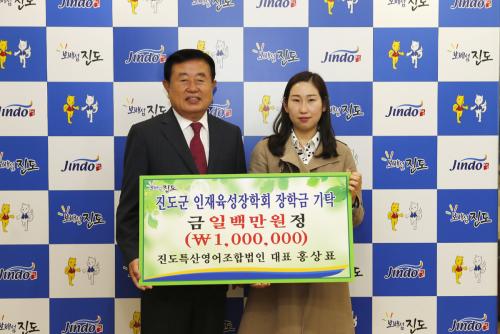 [Áøµµ=¹Ìµð¾îÀü³²]Á¶È£±â ±âÀÚ=ÁøµµÆ¯»ê¿µ¾îÁ¶ÇÕ¹ýÀÎÀÌ Áö³ 9ÀÏ(¿ù) Áøµµ±º ÀÎÀçÀ°¼ºÀåÇÐ±Ý 100¸¸¿øÀ» Àü´ÞÇÏ°í ¼Ò¿ÜµÈ ÀÌ¿ôÀ» À§ÇÑ ¼º±Ý 50¸¸¿øÀ» ¸Å¿ù ÁöÁ¤ ±âŹÇϱâ·Î Çß´Ù.