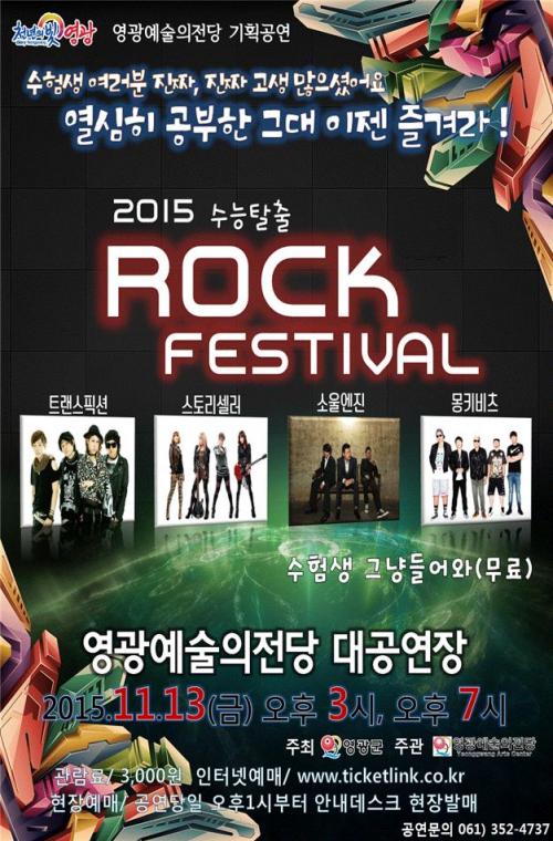 [¿µ±¤=¹Ìµð¾îÀü³²]±èÁø°æ ±âÀÚ=¿µ±¤±º(±èÁؼº ±º¼ö)Àº ¼ö´ÉÀ» ¸¶Ä£ ¼öÇè»ý°ú Çкθ𸦠À§ÇÑ Æ¯º°°ø¿¬À» 11¿ù 13ÀÏ ¿ÀÈÄ 3½Ã, Àú³á7½Ã ´ë°ø¿¬Àå¿¡¼ 2015 ¼ö´ÉÅ»Ãâ ROCK(¶ô) Æä½ºÆ¼¹ßÀ» °³ÃÖÇÑ´Ù.