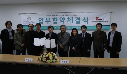 µÎ ±â°üÀº 1¿ù 26ÀÏ(È) ¿ÀÀü 11½Ã 30ºÐ ±¤ÁÖÁ¤º¸¹®È»ê¾÷ÁøÈï¿ø¿¡¼ Çù¾à½ÄÀ» °³ÃÖÇϰí, ¾ÕÀ¸·Î Áö¿ª ÄÜÅÙÃ÷ ¹ß±¼°ú âÀÛÀÚ¡¤Á¦ÀÛÀÚ À°¼º, ¹®È±â¼ú(CT)À» Ȱ¿ëÇÑ ÄÜÅÙÃ÷ âÀÛ µî Áö¿ª ÄÜÅÙÃ÷ »ê¾÷ ÁøÈï¿¡ ÇÊ¿äÇÑ ´Ù¾çÇÑ Çù·Â »ç¾÷À» ÃßÁøÇϱâ·Î Çß´Ù.