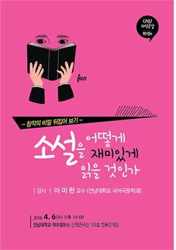 À̳¯ CNU Áö½Ä°ø°¨¿¡¼´Â À̶̹õ Àü³²´ëÇб³ ±¹¾î±¹¹®Çаú ±³¼ö°¡ ¡®¼Ò¼³À» ¾î¶»°Ô Àç¹ÌÀÖ°Ô ÀÐÀ» °ÍÀΰ¡¡¯¸¦ ÁÖÁ¦·Î °¿¬À» ÆîÄ¥ ¿¹Á¤ÀÌ´Ù.