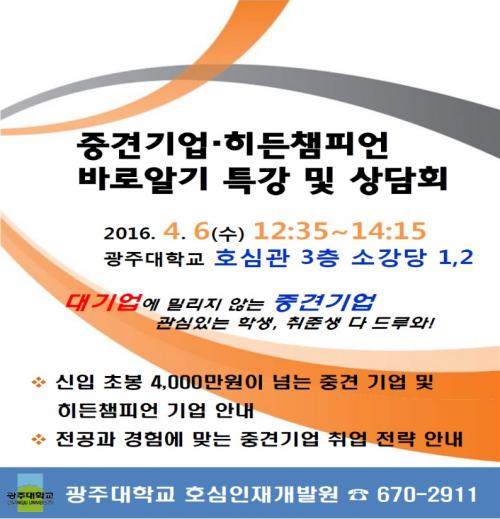 [±¤ÁÖ=¹Ìµð¾îÀü³²]¹ÚÂù ±âÀÚ=±¤ÁÖ´ëÇб³(ÃÑÀå ±èÇõÁ¾)´Â ¿À´Â 6ÀÏ ³· 12½Ã30ºÐºÎÅÍ Çб³ È£½É°ü ¼Ò°´ç¿¡¼ ¡®Áß°ß±â¾÷¡¤È÷µçèÇǾð ±â¾÷ ¹Ù·Î¾Ë±â¡¯ Ãë¾÷ Ư°À» °³ÃÖÇÑ´Ù.
