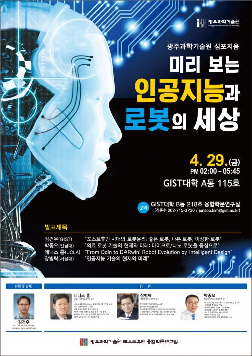 GIST Æ÷½ºÆ®ÈÞ¸Õ À¶ÇÕÇй®¿¬±¸ÆÀÀº ¿À´Â 4¿ù 29ÀÏ(±Ý) ¿ÀÈÄ 2½ÃºÎÅÍ 6½Ã±îÁö Çлç°úÁ¤ÀÎ GIST´ëÇÐ Aµ¿(115È£)¿¡¼ ¡¸¹Ì¸® º¸´Â ÀΰøÁö´É°ú ·Îº¿ÀÇ ¼¼»ó¡¹À» ÁÖÁ¦·Î Àü¹®°¡ 4¸íÀÇ Æ¯°À» ÁøÇàÇÏ´Â ½ÉÆ÷Áö¾öÀ» °³ÃÖÇÑ´Ù.