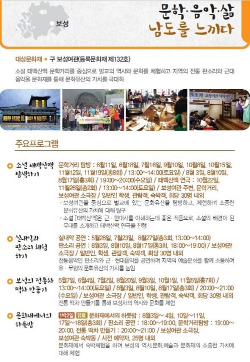 º¸¼º¿©°üÀº ¹®ÈÀ縦 ÅëÇÑ ¹®ÈÀ¯»êÀÇ °¡Ä¡¸¦ ±Ø´ëÈÇϱâ À§ÇÏ¿© ¿ÃÇØ 11¿ù±îÁö ¡®Å¹é»ê¸Æ ¹®ÇаŸ®¡¯¸¦ Áß½ÉÀ¸·Î ¹ú±³ÀÇ ¿ª»ç¿Í ¹®È¸¦ üÇèÇϰí Áö¿ªÀÇ ÀüÅë ÆÇ¼Ò¸®¿Í ±Ù´ëÀ½¾Ç°ø¿¬ µîÀÇ ´Ù¾çÇÑ ¹®ÈÇÁ·Î±×·¥À» ÁøÇàÇÑ´Ù.