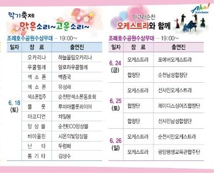 ¸ñ°ü, ±Ý°ü, Ÿ¾Ç±â, Çö¾Ç±âÀÇ ¸ÚÁø Çϸð´Ï·Î ÆîÃÄÁú °ø¿¬Àº 24ÀÏ¿¡´Â Æ÷¿¡¹ö¿ÀÄɽºÆ®¶ó¿Í ¼øÃµ³²¼ºÇÕâ´ÜÀÇ Çù¿¬, 25ÀÏÀº ¼±»þÀοÀÄɽºÆ®¶ó¿Í ·¹À̵𽺽̾îÁî¿©¼ºÇÕâ´Ü¡¤¼±»þÀÎ ³²¼ºÇÕâ´ÜÀÌ ¿ÀÄɽºÆ®¶óÀÇ ¿õÀåÇÔÀ¸·Î °ü°´µéÀÇ ¸¶À½À» ¿ï¸± °ÍÀ¸·Î ±â´ëµÈ´Ù.