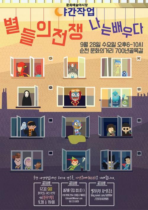 ½Ã¿¡ µû¸£¸é 28ÀÏ ¿ÀÈÄ 6½ÃºÎÅÍ ¼øÃµ¹®ÈÀÇ °Å¸® ±â¾ïÀÇ Áý°ú û¼Ò³â¼ö·Ã°ü ±¤Àå¿¡¼ 'º°µéÀÇ ÀüÀï ³ª´Â ¹è¿ì´Ù'¸¦ ÁÖÁ¦·Î ¹®È¿¹¼ú¾ß½ÃÀå ¾ß°£ÀÛ¾÷ Çà»ç¸¦ °³ÃÖÇÑ´Ù.