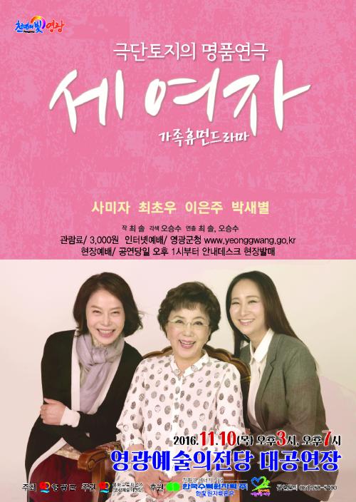 ¿¬±Ø ¡®¼¼ ¿©ÀÚ¡¯´Â ¿ì¸® »çȸ¸¦ »ì¾Æ°¡´Â ¿©ÀÎÀÇ »î°ú ¼¼´ë °£ÀÇ À庮 µîÀ» ¼ÒÀç·Î ´Ù·ç°í ÀÖÀ¸¸ç Á¾°«ÁýÀ» Áö۰í ÀÖ´Â ÁÖÀΰø ºÀÀÚ¿Í ¸ç´À¸® ¼ö¿¬, ¼Õ³àµþ ½Â³²ÀÇ ¾ÖÁõ°ú °¥µî, ÈÇØÀÇ °úÁ¤ µîÀ» ±×·È´Ù. ºÀÀÚ ¿ªÀº ¹è¿ìÀÌÀÚ ÅÅ·±Æ®ÀÎ »ç¹ÌÀÚ ¼±»ýÀÌ, ¸ç´À¸®ÀÎ ¼ö¿¬ ¿ªÀº ÃÖÃʿ찡 ¿¿¬ÇÏ¸ç ¼Õ³àµþ ½Â³² ¿ªÀº À̼º°æÀÌ Ã⿬ÇÑ´Ù.