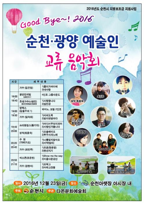 [¼øÃµ=¹Ìµð¾îÀü³²]¹Ú¼±¿Á ±âÀÚ=¼øÃµ½Ã´Â ¼Û³âÀ» ¸Â¾Æ 23ÀÏ ¿ÀÈÄ 6½Ã ¼øÃµ ¾Æ·§Àå ¾ß½ÃÀå ÁÖ¹«´ë¿¡¼ ¡®2016 ¼øÃµ¡¤±¤¾ç ¿¹¼úÀÎ ±³·ù À½¾Çȸ¡¯¸¦ °³ÃÖÇÑ´Ù.