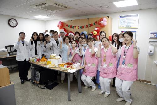 [±¤ÁÖ=¹Ìµð¾îÀü³²]±èâ¿ø ±âÀÚ=Àü³²´ëÇб³º´¿ø(º´¿øÀå À±Åø²)ÀÌ ¼ºÅºÀýÀ» ÀÌÆ² ¾ÕµÐ 23ÀÏ ¼Ò¾ÆÃ»¼Ò³â°ú º´µ¿(1µ¿ 5Ãþ)¿¡¼ ¡®¾î¸°ÀÌ È¯ÀÚ¸¦ À§ÇÑ Å©¸®½º¸¶½º ÀÜÄ¡¡¯¸¦ ¿¾ú´Ù.