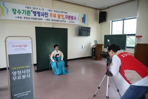 À̳¯ Çà»ç´Â ·Ôµ¥¾Æ¿ï·¿ ³²¾ÇÁ¡ÀÇ Áö¿ª»çȸ °øÇåȰµ¿ÀÇ ÀÏȯÀ¸·Î ¹«¾È±º¿¡ °ÅÁÖÇÏ¸é¼ ¿µÁ¤»çÁø ÃÔ¿µÀ» Èñ¸ÁÇÏ´Â ¾î¸£½Å 50¿©¸íÀ» ´ë»óÀ¸·Î »çÁøÃÔ¿µ Àü¹®°¡ÀÇ Àç´É±âºÎ¿Í »çÁøÁ¦ÀÛ ºñ¿ë Àü¾×À» ·Ôµ¥¾Æ¿ï·¿ ³²¾ÇÁ¡¿¡¼ ºÎ´ãÇØ ÁøÇàµÆÀ¸¸ç, ÃÔ¿µÇÑ ¿µÁ¤»çÁøÀº Á¦ÀÛÀÌ ¿Ï·á µÇ´Â´ë·Î ¾î¸£½Åµé¿¡°Ô Àü´ÞµÉ ¿¹Á¤ÀÌ´Ù.