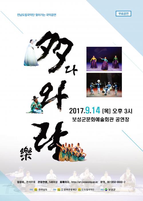 ¡®Òý(´Ù)¿ÍÕ¥(¶ô)¡¯Àº Àü³²µµ¸³±¹¾Ç´Ü(°¨µ¶ À¯À念)ÁÖ°üÀ¸·Î ´Ü¿ø 20¿©¸íÀÌ Ã⿬ÇÏ¿© Ä£¼÷ÇÑ ¼±À²°ú Àå´ÜÀÇ Áñ°Å¿òÀ» °üÇö¾ÇÀ¸·Î Ç®¾î³½ °ø¿¬ÀÌ´Ù.