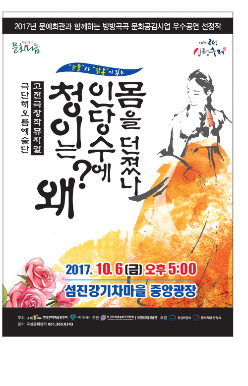 ¡®È¿¿Í ÇÔ²² ¿¾î°¡´Â ÇູÇÑ ¼¼»ó¡¯À» ÁÖÁ¦·Î ¿¸®´Â Á¦17ȸ °î¼º½ÉûÃàÁ¦(10¿ù 6ÀÏ ~ 10¿ù 9ÀÏ)À» ¹ÂÁöÄà ÃÊûÀÛÀÎ ¡®Ã»ÀÌ´Â ¿Ö Àδç¼ö¿¡ ¸öÀ» ´øÁ³³ª¡¯¹ÂÁöÄà °ø¿¬À» ½ÃÀÛÀ¸·Î È·ÁÇÑ ÃàÁ¦ÀÇ ½ÃÀÛÀ» ¾Ë¸± ¿¹Á¤ÀÌ´Ù.