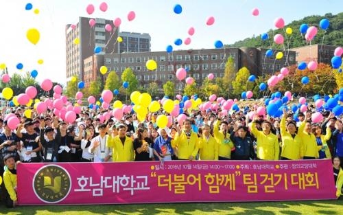 [±³À°=¹Ìµð¾îÀü³²]¼»ó¹Î ±âÀÚ=È£³²´ëÇб³(ÃÑÀå ¼°¼®)°¡ Áö¿ªÁÖ¹Î, Çкθð, Çлý, Á¹¾÷»ý µ¿¹®, ±³Á÷¿øµéÀÌ ÆÀÀ» ÀÌ·ï °¡À»Á¤Ãë ±×À¹ÇÑ °º¯±æÀ» °ÉÀ¸¸ç ¼ÒÅë°ú ¹è·Á, Çù·ÂÀÇ Çϸð´Ï¸¦ ¸¸µé¾î°¡´Â ÃàÁ¦ÀÇ ÀåÀ» ¸¶·ÃÇÑ´Ù.