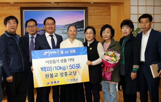 [ÀåÈï=¹Ìµð¾îÀü³²]Á¦°¥´ëÁ¾ ±âÀÚ=¿øºÒ±³ ÀåÈï±³´ç(±³¹« Á¤ÇöÈ£, Á¤Çö¼÷)Àº Áö³ 25ÀÏ ¿øºÒ±³ ÃÖ´ë °æÃàÀÏÀÎ Á¦103Áֳ⠴밢°³±³ÀýÀ» ¸Â¾Æ, ¾î·Á¿î ÀÌ¿ô¿¡°Ô Àü´ÞÇØ´Þ¶ó¸ç 10kg ¹é¹Ì 50Æ÷¸¦ ÀåÈﱺ¿¡ ±âŹÇß´Ù.