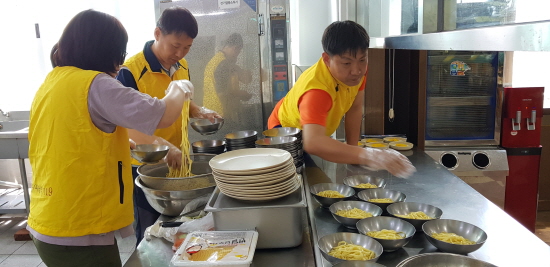 À̳¯ ºÀ»ç¿¡´Â 119¼¶³ªÈ¸ Á÷À嵿ȣȸ ȸ¿ø ¹× °¡Á· µî 12¸íÀÌ Â¥Àå¸é°ú ÅÁ¼öÀ°À» Á÷Á¢ ¸¸µé¾î ¼º½Å¿ø ¾î¸°À̵鿡°Ô Á¡½É½Ä»ç·Î Á¦°øÇϰí, ¾î¸°À̵éÀÌ ÁÁ¾ÆÇÏ´Â °úÀÚ¿Í °úÀϵµ ÁغñÇØ ÇÔ²² Áñ±â¸ç ¶æ±íÀº ½Ã°£À» º¸³Â´Ù.