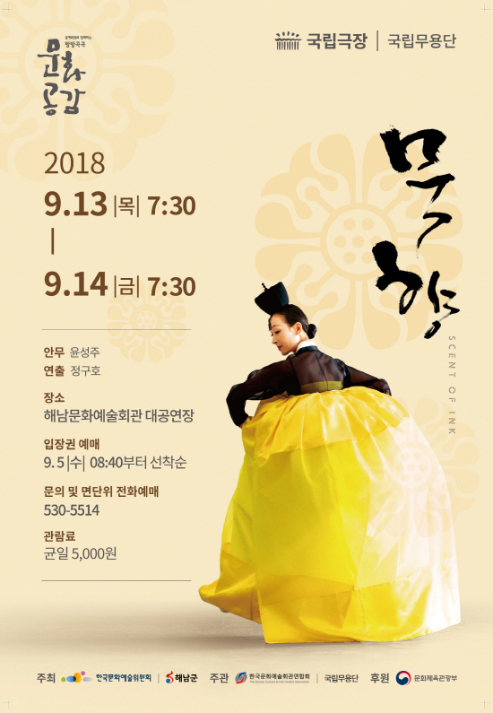 À̹ø °ø¿¬Àº ¹®ÈüÀ°°ü±¤ºÎ ¹æ¹æ°ø°î¹®È°ø°¨ °ø¸ð»ç¾÷¿¡ ¼±Á¤µÈ ÀÛǰÀ¸·Î ±¹ºñ¸¦ Áö¿ø¹Þ¾Æ ÃßÁøµÈ´Ù. °ø¿¬ ½Ã°£Àº ¿ÀÈÄ 7½Ã 30ºÐÀ̸ç, ¿¹¸Å´Â 9¿ù 5ÀÏ ¼ö¿äÀÏ ¿ÀÀü 8½Ã 40ºÐºÎÅÍ ¹®È¿¹¼úȸ°ü 1Ãþ ·Îºñ¿¡¼ ¼±Âø¼øÀ¸·Î ¿¹¸ÅÇÑ´Ù. °ø¿¬°ü¶÷·á´Â ±ÕÀÏ 5,000¿ø ÀÌ´Ù.