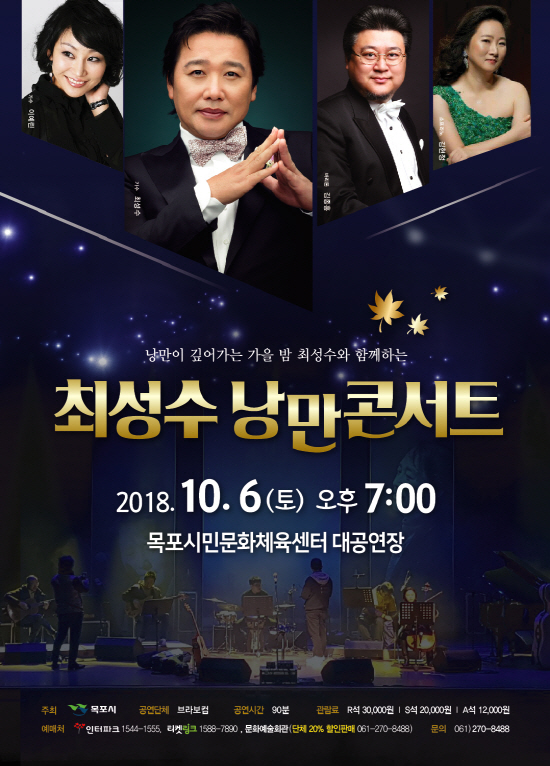 À̹ø °ø¿¬Àº ÁöÁ¤Á¼®Á¦¿Í Á¼® ¿¹¸ÅÁ¦¸¦ ½ÃÇàÇÏ¸ç °ü¶÷·á´Â R¼® 3¸¸¿ø, S¼® 2¸¸¿ø, A¼® 1¸¸2õ¿øÀÌ´Ù. ¿¹¸Å´Â ƼÄϸµÅ©(www. ticketlink. co. kr), ÀÎÅÍÆÄÅ©(www. interpark. com), ¸ñÆ÷ ¹®È¿¹¼úȸ°ü(´Üü ÇÒÀÎ ¿¹¸Å)¿¡¼ °¡´ÉÇÏ´Ù. ¸ñÆ÷½Ã¹Î°ú ´Üü(20ÀÎ ÀÌ»ó)°¡ ¿¹¸ÅÇϸé 50% ÇÒÀεȴÙ.