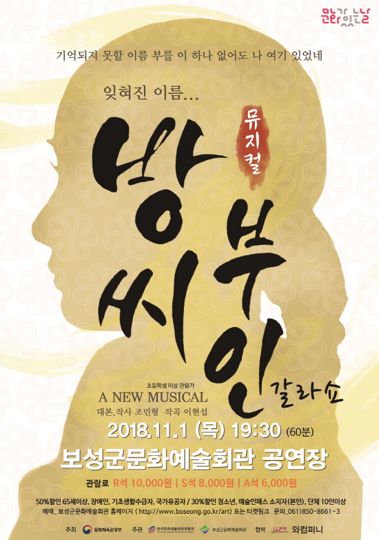 °ø¿¬Àº Çѱ¹¹®È¿¹¼úÀ§¿øÈ¸°¡ ÁÖÃÖÇϰí Çѱ¹¹®È¿¹¼úȸ°ü¿¬ÇÕȸ¿Í º¸¼º±ºÀÌ ÁÖ°üÇÏ¸ç ¹®ÈüÀ°°ü±¤ºÎ°¡ ÈÄ¿øÇÏ´Â '2018³â ¹®¿¹È¸°ü°ú ÇÔ²²ÇÏ´Â ¹æ¹æ°î°î ¹®È°ø°¨»ç¾÷¡¯ÀÇ ÀÏȯÀ¸·Î °ø¿¬·á ÀϺθ¦ ¹®¿¹ÁøÈï±â±ÝÀ¸·Î Áö¿ø ¹Þ¾Æ ÃßÁøµÈ´Ù.