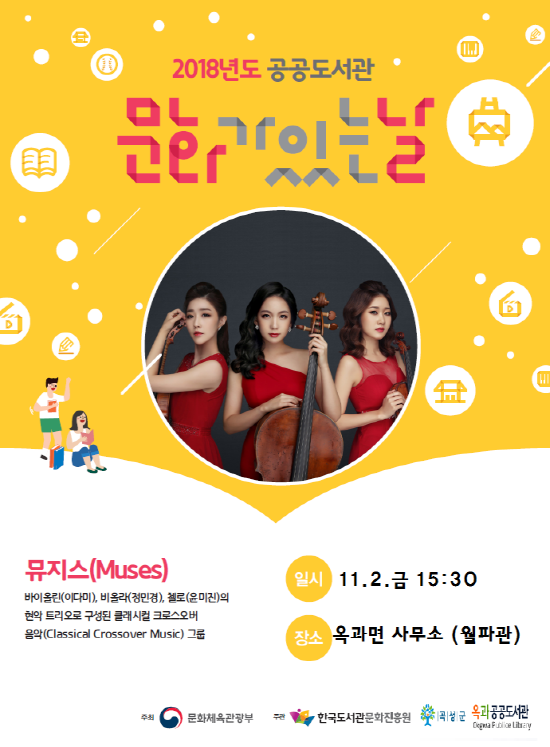 À̹ø °ø¿¬Àº ¹®ÈüÀ°°ü±¤ºÎ¿Í (Àç)Çѱ¹µµ¼°ü¹®ÈÁøÈï¿øÀÌ ÁÖ°üÇÏ´Â ¡®°ø°øµµ¼°ü ¹®È°¡ ÀÖ´Â ³¯¡¯ °ø¸ð»ç¾÷¿¡ °î¼º±º ¿Á°ú°ø°øµµ¼°üÀÌ ¼±Á¤µÇ¾î ¸¶·ÃµÈ °ÍÀÌ´Ù. ¡®¹®È°¡ ÀÖ´Â ³¯¡¯Àº À½¾Ç °ø¿¬ »Ó¸¸ ¾Æ´Ï¶ó ¡â¸¶¼ú ¡âŬ·¡½Ä ¡âÀÎÇü±Ø µî ´Ù¾çÇÑ ¹®È¿¹¼ú °ø¿¬À» ÅëÇØ °ø°øµµ¼°ü Ȱ¼ºÈ¿¡ ±â¿©Çϰí ÀÖ´Ù.