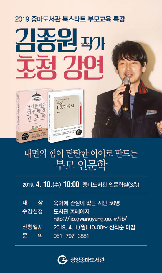 À°¾Æ ¹× Àڳ౳À°¿¡ °ü½ÉÀÌ ÀÖ´Â ±¤¾ç½Ã¹ÎÀÌ¸é ´©±¸³ª ½ÅûÇÒ ¼ö ÀÖ°í, ±¤¾ç½Ã¸³µµ¼°ü ȨÆäÀÌÁö(http://lib.gwangyang.or.kr)¸¦ ÅëÇØ ¼±Âø¼øÀ¸·Î Á¢¼öÇÏ¸é µÈ´Ù.