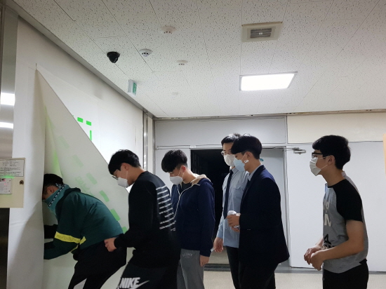 ´ëÇÇ ½Ã´Â Á¥Àº ¼ö°ÇÀ¸·Î ÄÚ¿Í ÀÔÀ» ¸·°í ÀÚ¼¼¸¦ ³·Ãç ´ëÇÇ Àå¼Ò·Î ÇâÇÑ´Ù. ¼ÒÁöǰÀ» ì±â·Á°í ½Ã°£À» ÁöüÇÏ¸é ¾È µÈ´Ù. ½Â°±â(¿¤¸®º£ÀÌÅÍ)¸¦ ÀÌ¿ëÇÏÁö ¸»°í Áú¼ ÀÖ°Ô À̵¿ÇÏ¸ç °¡Àå ´Ê°Ô ³ª¿À´Â ÇлýÀÌ ±³½Ç ¹®À̳ª ±â¼÷»ç ¹æ¹®À» ´Ý°í ³ª¿Â´Ù. ¾Æ·¡ÃþÀ¸·Î ´ëÇǰ¡ ¾î·Á¿î °æ¿ì ¿Á»óÀ¸·Î ´ëÇÇÇØ ±¸Á¶¸¦ ¿äûÇÑ´Ù.