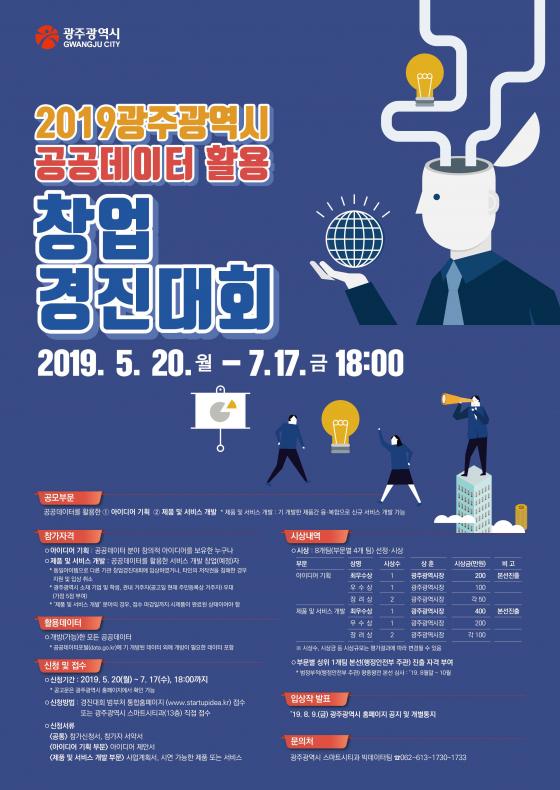 [±¤ÁÖ=¹Ìµð¾îÀü³²]À±¹ÌÇý ±âÀÚ=±¤ÁÖ±¤¿ª½Ã´Â °ø°øµ¥ÀÌÅ͸¦ Ȱ¿ëÇÑ Ã¢ÀÇÀû ¾ÆÀ̵ð¾î¿Í ºñÁî´Ï½º ¸ðµ¨À» ¹ß±¼Çϱâ À§ÇØ ¡®2019 ±¤ÁÖ±¤¿ª½Ã °ø°øµ¥ÀÌÅÍ È°¿ë â¾÷°æÁø´ëȸ¡¯¸¦ °³ÃÖÇÑ´Ù.