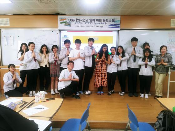 ¿Ü±¹Àΰú ÇÔ²² ÇÏ´Â ¹®È±³½Ç(CCAP)ÀÇ ÃëÁö´Â ¿ì¸®Ã»¼Ò³âµéÀÌ Áö±¸ÃÌÀÇ ´Ù¾çÇÑ »ç¶÷À» ´ë¸éÇÏ°í ±× ³ª¶ó ¹®È¿¡ ´ëÇÑ ¼ö¾÷À» ÅëÇØ ´Ù¹®È ÀÌÇØ±³À°ÀÇ ±âȸ¸¦ Á¦°øÇϰí, ±¹ÀûÀ» ÃÊ¿ùÇÏ¿© Àΰ£À» Â÷º°ÇÏÁö ¾Ê°í Á¸ÁßÇÏ´Â ¼º¼÷µÈ ¼¼°è½Ã¹ÎÀǽÄ(Global Citizenship)À» ÇÔ¾çÄÉ ÇÏ´Â µ¥ ÀÖ´Ù. ÀÌ ³¯ ¿Ü±¹Àΰú ÇÔ²² ÇÏ´Â ¹®È±³½ÇÀº 1,2Çгâ ÇлýµéÀ» ´ë»óÀ¸·Î ÀεµÀÇ ÀüÅë°ú ¹®È¸¦ ¼Ò°³ÇÏ´Â ³»¿ëÀ¸·Î ÁøÇàµÇ¾ú´Ù. ÀεµÀÇ ÀüÅëÀÇ»ó Âø¿ëÇØ º¸±â, Àεµ ¹®È¿Í ¿ì¸® ¹®ÈÀÇ Â÷ÀÌ ÀÌÇØÇϱ⠵î ÀεµÀÇ ¹®È¸¦ ÇÑÃþ ±íÀÌ ÀÌÇØÇÒ ¼ö Àִ Ȱµ¿À¸·Î ä¿öÁ® ÇлýµéÀÇ °ü½ÉÀ» ³ô¿´´Ù.