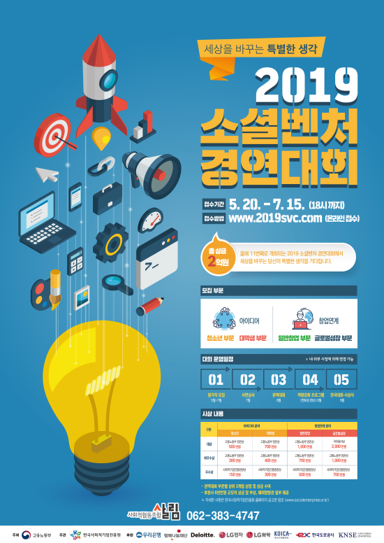 °¢ ºÎ¹®º° ¿ì¼öÆÀ¿¡´Â ÃÖ´ë 2õ¸¸¿ø±îÁö ÃÑ 2¾ï¿øÀÇ »ó±ÝÀÌ ¼ö¿©µÇ°í â¾÷¿¬°è ºÐ¾ß Àü±¹´ëȸ ÀÔ»óÆÀÀº 2020³â ¡®»çȸÀû±â¾÷ À°¼º»ç¾÷¡¯¿¡ Âü¿©ÇÏ¿© »çȸÀû±â¾÷ â¾÷ÀÇ Àü °úÁ¤À» Áö¿ø¹ÞÀ» ¼ö ÀÖ´Ù. ÀÚ¼¼ÇÑ ¹®ÀÇ »çȸÀûÇùµ¿Á¶ÇÕ »ì¸² â¾÷À°¼ºÆÀ(¢Ï062.383.4747)À¸·Î ÇÏ¸é µÈ´Ù.