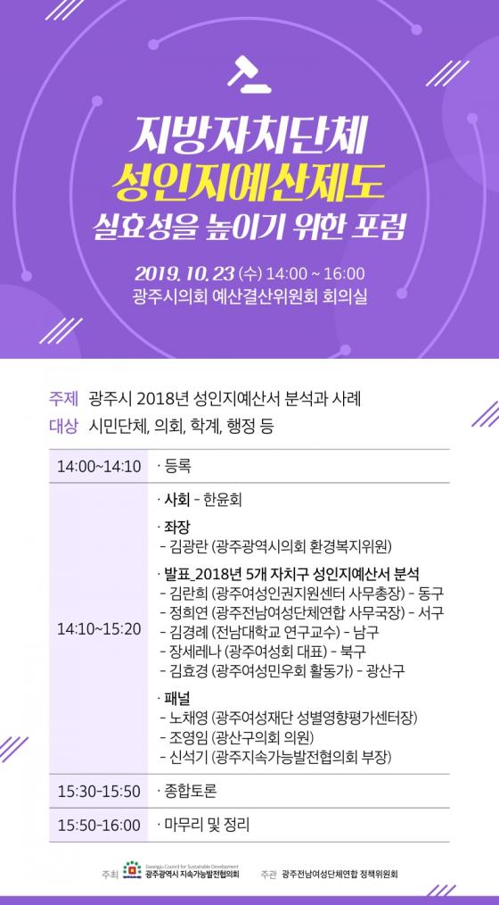 [±¤ÁÖ=¹Ìµð¾îÀü³²]À±¹ÌÇý ±âÀÚ=Áö¹æÀÚÄ¡´Üü ¼ºÀÎÁö¿¹»êÁ¦µµ ½ÇÈ¿¼ºÀ» ³ôÀ̱â À§ÇÑ Æ÷·³ÀÌ 10¿ù 23ÀÏ ¿ÀÈÄ 2½Ã ±¤ÁÖ½ÃÀÇȸ 5Ãþ ¿¹»ê°á»êÀ§¿øÈ¸ ȸÀǽǿ¡¼ ÁøÇàµÈ´Ù.