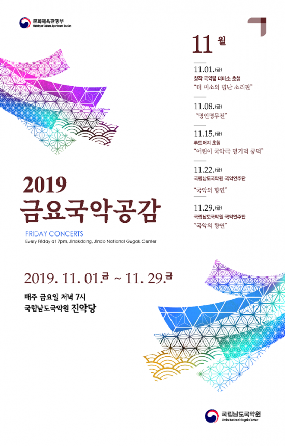 º» °ø¿¬Àº ¹«·á·Î °ü¶÷ ÇÒ ¼ö ÀÖÀ¸¸ç, °ø¿¬ ´çÀÏ ¿ÀÈÄ 6½Ã 20ºÐ ÁøµµÀ¾»ç¹«¼Ò, 6½Ã 35ºÐ ½ÊÀϽà »ç°Å¸®¿¡¼ ¹«·á ¼ÅƲ¹ö½º¸¦ ÀÌ¿ëÇÒ ¼ö ÀÖ´Ù. °ø¿¬¿¡ °üÇÑ ÀÚ¼¼ÇÑ ³»¿ëÀº ±¹¸³³²µµ±¹¾Ç¿ø ´©¸®Áý(http://jindo.gugak.go.kr) ȤÀº ÀüÈ 061-540-4031~3 Àå¾Ç°ú¿¡¼ ¾È³» ¹ÞÀ» ¼ö ÀÖ´Ù.