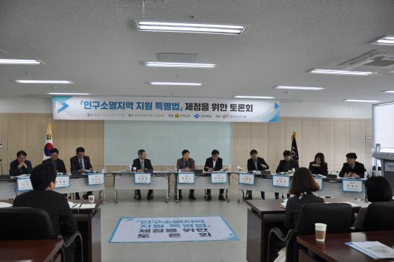 Àü¶ó³²µµ´Â ³óÃÌÁö¿ª Àα¸ °¨¼Ò ¹®Á¦ ÇØ°áÀ» À§ÇØ °æ»óºÏµµ¿Í °øµ¿À¸·Î 20ÀÏ ±¤ÁÖÀü³²¿¬±¸¿ø¿¡¼ 100¿© ¸íÀÌ Âü¼®ÇÑ °¡¿îµ¥ ¡®Àα¸¼Ò¸êÁö¿ª Áö¿ø Ưº°¹ý¡¯ Á¦Á¤ Çʿ伺°ú ½ÇÈ¿¼º ÀÖ´Â ¹ý¾È ¸¶·ÃÀ̶õ ÁÖÁ¦·Î Åä·Ðȸ¸¦ °³ÃÖÇß´Ù.