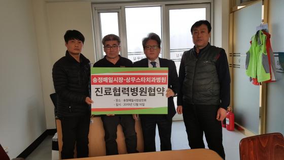 ÀÌ ÀÚ¸®¿¡¼ ¾çÃøÀº »óÈ£ °£ÀÇ Çù·ÂÀ» ¹ÙÅÁÀ¸·Î ¼ÛÁ¤¸ÅÀϽÃÀå »óÀεéÀÌ »ó¹«½ºÅ¸Ä¡°úº´¿øÀ» ¹æ¹® ½Ã Áø·áºñ °æ°¨°ú Áø·á ÆíÀǸ¦ Á¦°øÇϱâ·Î Çß´Ù.