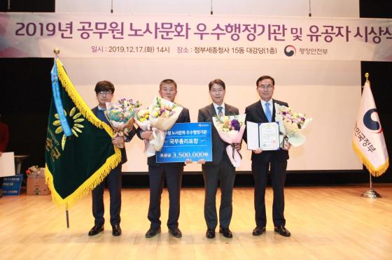 ȼø±º(±º¼ö ±¸Ãæ°ï)°ú ȼø±º °ø¹«¿ø³ëµ¿Á¶ÇÕ(À§¿øÀå ¹Ú°æ¹Î)ÀÌ 17ÀÏ ÇàÁ¤¾ÈÀüºÎ°¡ ÁÖ°üÇÑ ¡®2019³â °ø¹«¿ø ³ë»ç¹®È ¿ì¼öÇàÁ¤±â°ü ÀÎÁõÁ¦¡¯ ½É»ç Æò°¡ ¿¡¼ ±¹¹«ÃѸ® ǥâÀ» ¼ö»óÇß´Ù.
