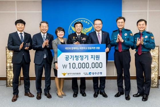 À̹ø À§¹® ¹æ¹®Àº ¿¬¸»À» ¸Â¾Æ Áö¿ª Ä¡¾È°ú ¹Î»ý¾ÈÁ¤À» À§ÇØ Çå½ÅÇÏ´Â Àǹ«°æÂû ´ë¿øÀ» °Ý·ÁÇϱâ À§ÇØ ¸¶·ÃÇÑ °ÍÀ¸·Î ¼ÛÁ¾¿í ±¤ÁÖÀºÇàÀå°ú ÀåÇÏ¿¬ ±¤ÁÖÁö¹æ°æÂûûÀåÀÌ Âü¼®ÇÑ °¡¿îµ¥ Àǹ«°æÂû ´ë¿øÀÇ º¹ÁöÇâ»óÀ» À§ÇÑ 1õ¸¸¿ø »ó´çÀÇ °ø±âûÁ¤±â¸¦ À§¹®Ç°À¸·Î Àü´ÞÇß´Ù.