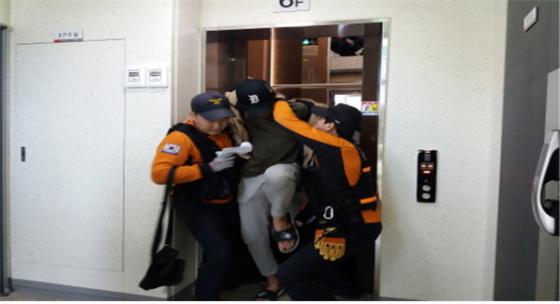 ÇöÀå¿¡ Ã⵿ÇÑ ±¸Á¶´ë¿øÀº ¡°¿ä±¸Á¶ÀÚ 2¸íÀÌ 5Ãþ°ú 6Ãþ »çÀÌ¿¡¼ ½Â°±â°¡ ¸ØÃç °¤Èù »óȲÀ¸·Î ¾ÈÀüÀ» À§ÇØ ½Â°±â Àü¿øÀ» Â÷´ÜÇÑ ÈÄ ¸¶½ºÅÍ۸¦ ÀÌ¿ëÇØ ¾ÈÀüÇÏ°Ô ¿ä±¸Á¶ÀÚ¸¦ ±¸Á¶ÇÏ¿´À¸¸ç ºÎ»óÀÚ ¾øÀÌ ±Í°¡Çß´Ù¡±°í ÀüÇß´Ù.