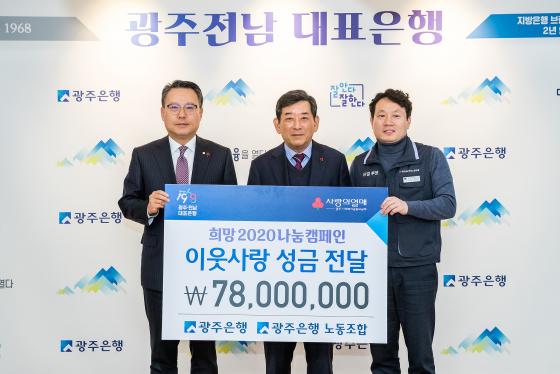 ±¤ÁÖÀºÇà(ÀºÇàÀå ¼ÛÁ¾¿í)Àº Áö³ 22ÀÏ º»Á¡¿¡¼ ±¤ÁÖ»çȸº¹Áö°øµ¿¸ð±Ýȸ ¡®Èñ¸Á 2020 ³ª´®Ä·ÆäÀΡ¯¿¡ ±¤ÁÖÀºÇà°ú ±¤ÁÖÀºÇà³ëµ¿Á¶ÇÕÀÌ ÇÔ²² 7õ8¹é¸¸¿øÀ» Àü´ÞÇß´Ù.