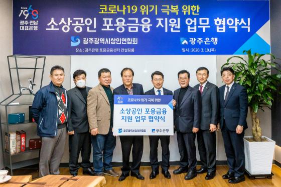 [¹Ìµð¾îÀü³² Á¦°¥´ëÁ¾ ±âÀÚ] ±¤ÁÖÀºÇà(ÀºÇàÀå ¼ÛÁ¾¿í)Àº Áö³ 19ÀÏ ±¤ÁÖÀºÇà Æ÷¿ë±ÝÀ¶¼¾ÅÍ¿¡¼ ¡®Äڷγª19¡¯·Î ÀÎÇØ ÇÇÇØ¸¦ ÀÔÀº ±â¾÷À» Áö¿øÇϰíÀÚ ±¤ÁÖ±¤¿ª½Ã »óÀο¬ÇÕȸ(ȸÀå ¼ÕÁßÈ£)¿Í ¼Ò»ó°øÀÎ Æ÷¿ë±ÝÀ¶ Áö¿ø ¾÷¹«Çù¾àÀ» ü°áÇß´Ù°í ¹àÇû´Ù.