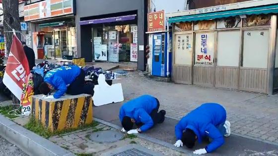 [¹Ìµð¾îÀü³² Á¦°¥´ëÁ¾ ±âÀÚ] ´õºÒ¾î¹ÎÁÖ´ç ÀÌ¿ëºó ±¤»ê°© ±¹È¸ÀÇ¿ø ¿¹ºñÈ帴 23ÀÏ ¿ÀÀü 7½Ã ¼ÛÁ¤µ¿ ¿µ±¤Åë»ç°Å¸®¿¡¼ Ãâ±Ù±æ ½Ã¹Îµé¿¡°Ô Á˼ÛÇÔ°ú °¨»ç¸¦ Ç¥ÇöÇÏ´Â ¡®¹éÆÈ¹è(¹é¿©´ü ¹ø ÇÏ´Â Àý)¡¯¸¦ µå¸®°í º»°Ý ¼±°Å¿îµ¿¿¡ ³ª¼¹´Ù.