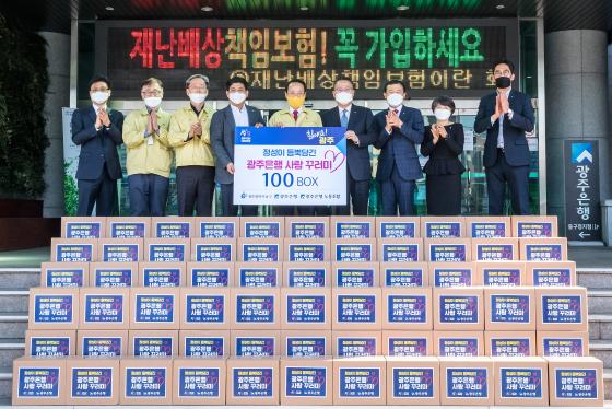 [¹Ìµð¾îÀü³² Á¦°¥´ëÁ¾ ±âÀÚ] ±¤ÁÖÀºÇà(ÀºÇàÀå ¼ÛÁ¾¿í)Àº 24ÀÏ ±¤ÁÖ±¤¿ª½Ã µ¿±¸Ã»¿¡¼ ±¤ÁÖÀºÇà ¼ÛÁ¾¿í ÀºÇàÀå°ú À̼º¿í ³ëµ¿Á¶ÇÕÀ§¿øÀå, ÀÓÅà µ¿±¸Ã»ÀåÀÌ Âü¼®ÇÑ °¡¿îµ¥¡®Äڷγª19¡¯À§±â ±Øº¹À» À§ÇÑ ¡®Á¤¼ºÀÌ µë»Ò ´ã±ä »ç¶ûÀÇ ²Ù·¯¹Ì¡¯100¹Ú½º¸¦ Àü´ÞÇß´Ù°í ¹àÇû´Ù.
