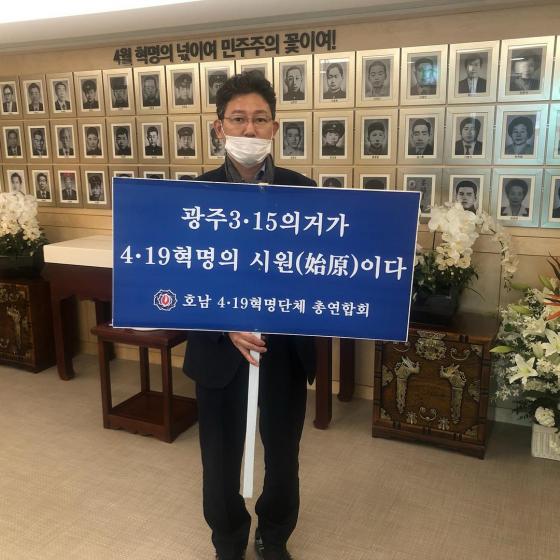 ³ë È帴 ±¤ÁÖ µ¿±¸¼ÒÀç 4.19Çõ¸í±â³ä°ü(°üÀå ±è¿µ¿ë)À» ã¾Æ Èñ»ýµÈ ¹ÎÁÖ¿µ·Éµé²² ºÐÇâÇÑ ÈÄ ¡°3.15ÀǰŴ 1960³â ÀÚÀ¯´ç Á¤±ÇÀÌ Á¤±ÇÀ» ¿¬ÀåÇϱâ À§ÇÑ ºÎÁ¤¼±°Å¸¦ ÀÚÇàÇÏ´Ù°¡ 3¿ù 15ÀÏ ³·12½Ã45ºÐ ±Ý³²·Î¿¡¼ ¾à1200¿©¸íÀÇ ±¤ÁֽùÎ,ÇлýµéÀÌ ºÎÁ¤¼±°Å¿¡ °ÝºÐÇÏ¿© ºÀ±â¸¦ ÀÏÀ¸Ä×°í, À̰ÍÀÌ ¸¶»êÀ¸·Î±îÁö À̾îÁ® À̳¯ ¹ã ÀÌÁÖ¿Çлý Áְ˹߰ßÀ¸·Î ÃË¹ßµÇ¾î ¸¶»ê Á¦1,2Â÷ Ó޽ùκÀ±â¿Í ÇÔ²² 3.15ÀǰŸ¦ ÀÌ·ç¾ú´Ù°í ¼³¸íÇÏ¸é¼ °á±¹ ±¤ÁֽùεéÀÇ ¹ÎÁÖÈÀǽÄÀÌ ÃÖÃÊ ±âÆøÁ¦°¡ µÇ¾ú°í ¸¶»êÀ¸·Î±îÁö È®»ê ÀüÆÄµÇ¾î 4.26ÀÏ À̽¸¸ ´ëÅë·É ÇϾ߷ΠÀ̾îÁ® ÀÚÀ¯´çÁ¤±ÇÀ» Á¾½Ä½ÃŲ À̸¥¹Ù 4.19Çõ¸íÀÌ´Ù¡± °í ¸»Çß´Ù.