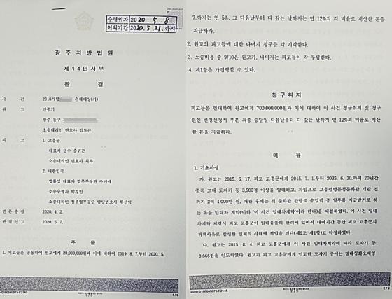 ±¤ÁÖÁö¹ý Á¦14¹Î»çºÎ(ºÎÀåÆÇ»ç À̱⸮)´Â ¹Î¾¾°¡ Á¤ºÎ¿Í °íÈﱺÀ» »ó´ë·Î ³½ ¼ÕÇØ¹è»ó ¼Ò¼Û¿¡¼ Á¤ºÎ¿Í °íÈﱺÀº °øµ¿À¸·Î ¹Î¾¾¿¡°Ô 2000¸¸¿øÀ» Áö±ÞÇ϶ó¸ç ¿ø°í ÀϺΠ½Â¼Ò ÆÇ°áÇß´Ù°í 11ÀÏ ¹àÇû´Ù. ¹Î¾¾´Â ±¹³»¿Ü °¨Á¤ °á°ú¸¦ Åä´ë·Î 7¾ï¿øÀÇ ¼Ò¼ÛÀ» Á¦±âÇß´Ù.