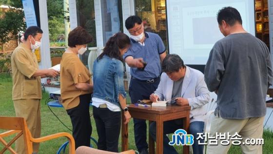 ÀÌ¾î ±èÈ«Á¤ ÀÛ°¡ÀÇ °Àǰ¡ ¿·È´Âµ¥ ±×´Â °¿øµµ ¿øÁÖ½ÃÀÇ ¡®ÅäÁö¹®Çаü¡¯¿¡ ÀÔÁÖÇØ ÁýÇÊ ÁßÀ̸ç À̹ø Çà»ç¸¦ À§ÇØ °íâ¿¡ ¿Ô´Ù´Â Àλ縻À» ¿Ã·È´Ù.